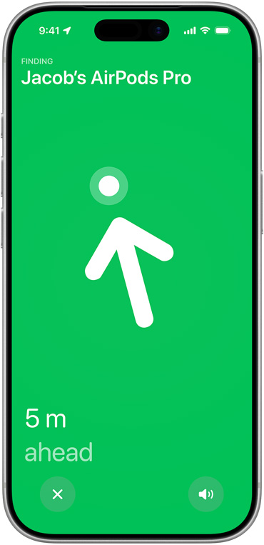 Charging case. Next-generation Ultra Wideband technology increases the distance of Precision Finding by 1.5x12, so you don’t lose track of your AirPods.