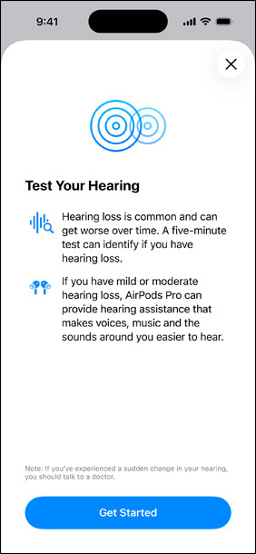 Access a Hearing Test1, a Hearing Aid feature1 and Loud Sound Reduction using just AirPods Pro 3 or AirPods Pro 2 and an iPhone or iPad. It's an all-in-one hearing health experience.