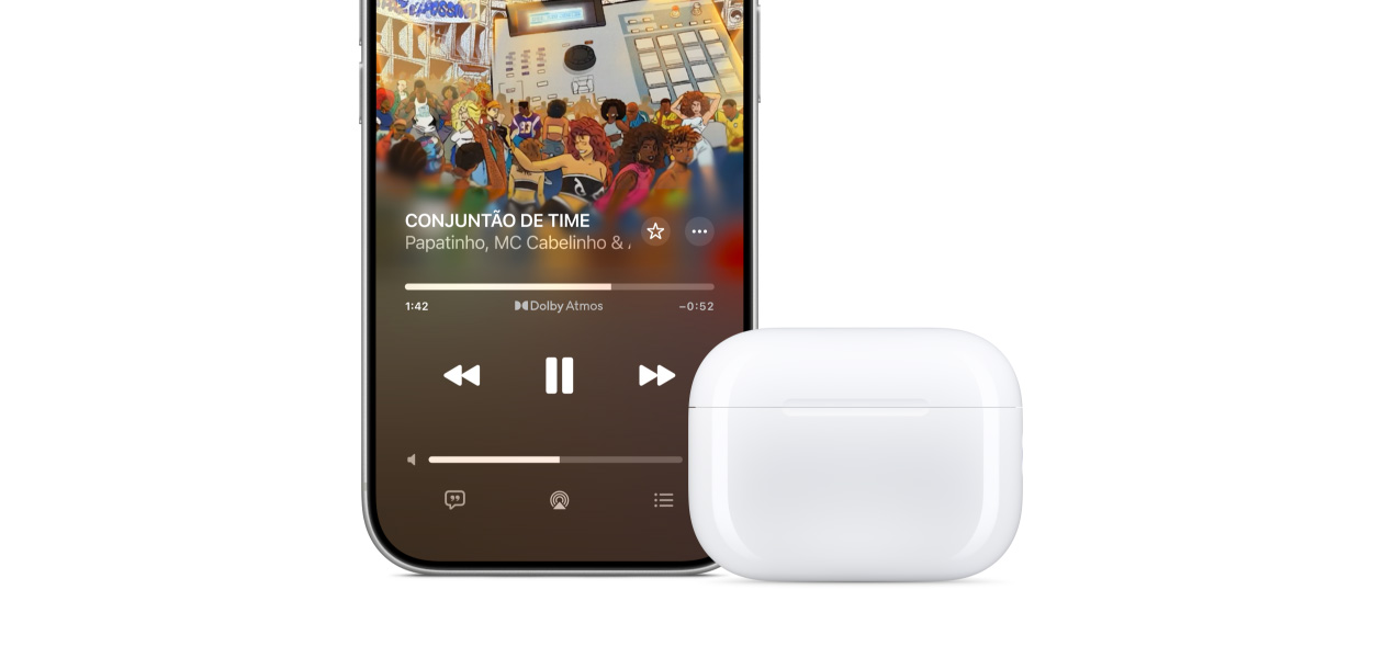 Os AirPods Pro 3 têm Equalização Adaptativa de última geração, que customiza o som de acordo com a anatomia e o encaixe nos seus ouvidos. E o Volume Personalizado usa aprendizado de máquina para entender seus padrões de áudio e se adaptar às suas preferências ao longo do tempo17.