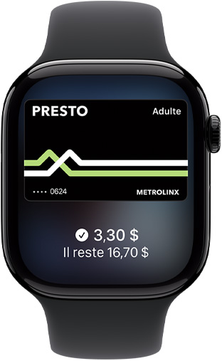 Si vous avez déjà ajouté une carte de crédit, carte de débit ou carte de fidélité compatible avec Apple Pay dans Portefeuille, double-cliquez sur le bouton principal pour ouvrir l’app, puis approchez votre appareil du lecteur. Sur
