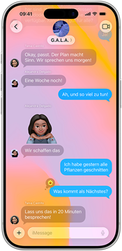 Apple Intelligence ist jetzt noch um­fassender integriert. So kannst du über ver­schie­dene Sprachen hinweg kommu­ni­zieren, noch per­sön­lichere Bilder erstellen und mehr Auf­gaben erle­digen.7