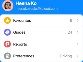Open Maps and tap your user account