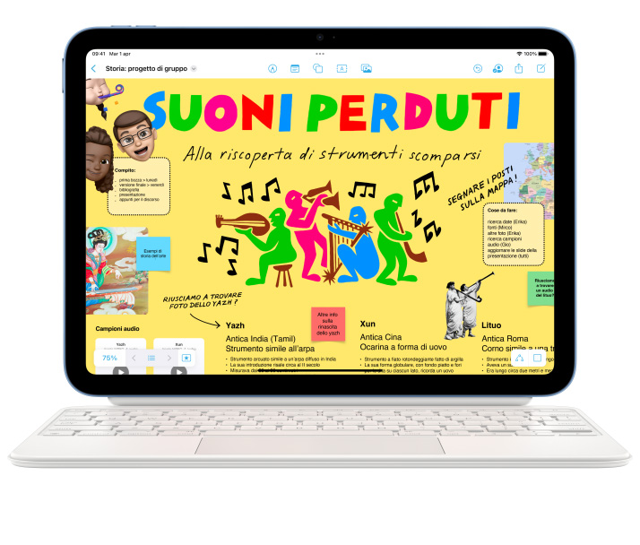 Modifica un foglio di calcolo, ritocca una presentazione in Keynote e prendi appunti al volo. La Magic Keyboard Folio è comodissima per scrivere e ha un trackpad ideale per lavorare di precisione.2