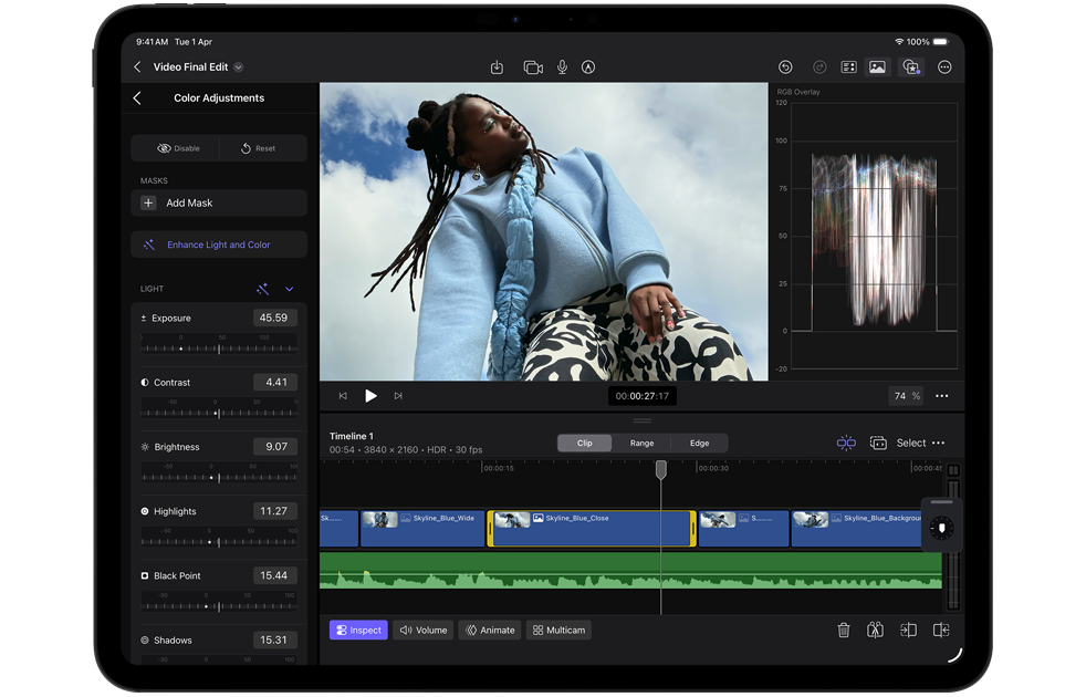 Shoot, edit, and share all on one device with a pro camera system with LiDAR Scanner, studio-quality mics, and four speakers. Capture 4K ProRes video, record a podcast, and pick the right microphone for each app with the input chooser.