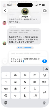ライブ翻訳をオンにすると、メッセージアプリのテキストを自動翻訳したり1、FaceTimeでライブ翻訳されたキャプションを表示したり2、電話アプリで会話の翻訳を読み上げさせることができます2。