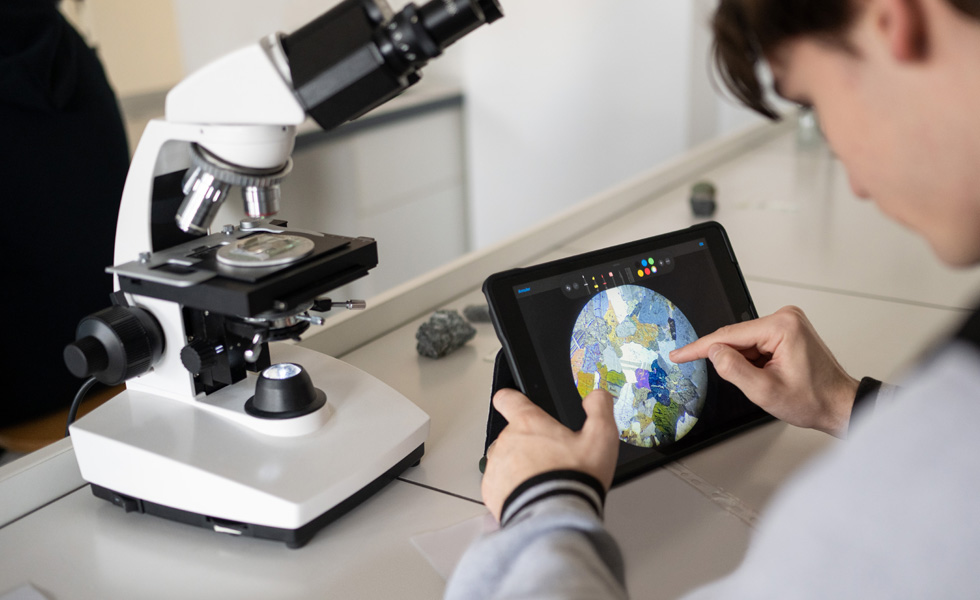 과학 전반에 걸쳐 iPad의 내장 앱과 기능은 학생들에게 동급 최고의 학습 도구가 되어줍니다. 모두 하나의 기기로 말이죠. 생물학 교사 Sophie Padilla의 수업에서 학생들은 현미경을 통해 보이는 세포를 ‘카메라’ 앱으로 캡처한 다음 Keynote에서 이미지에 마크업해 자신이 발견한 것들을 주석으로 답니다. Stéphane Calvo의 물리학 수업을 듣는 학생들은 움직이는 물체의 움직임을 관찰하고, 데이터를 Numbers에 기록하고, 결과 내에서 패턴을 찾기 위해 손쉽게 시각화합니다.