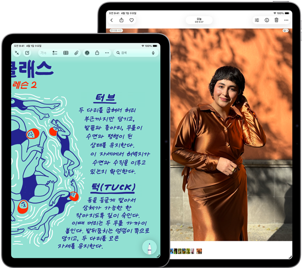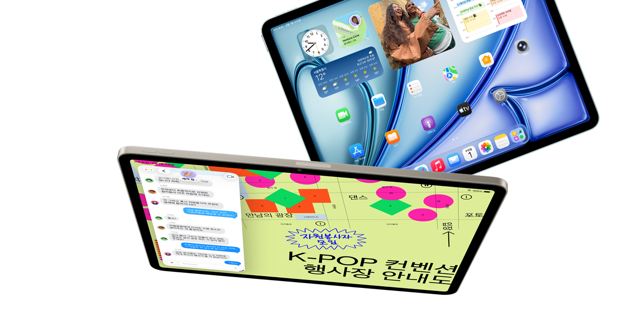 50% 더 커진 통합 메모리 시스템을 갖춘 쏜살같이 빠른 M4 칩이 iPad Air에서 당신이 즐겨 하는 모든 작업의 성능을 한 차원 끌어올립니다. 당신이 매일 사용하는 AI 기능과 성능을 지원하는 이 AI 파워머신 덕분에 어떤 일이든 더 빠르고 손쉽게 해낼 수 있죠. GPU 아키텍처는 당신이 일할 때는 물론 스트리밍, 창작 활동, 게임 등 상황을 가리지 않고 언제든지 한층 더 매끄러운 첨단 그래픽을 구현합니다. 게다가 모든 걸 놀랍도록 효율적으로 처리하기 때문에 온종일 가는 배터리 사용 시간까지 누릴 수 있답니다.4