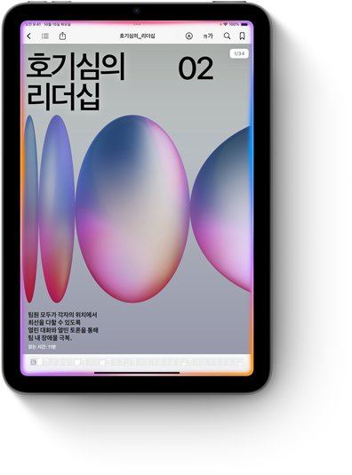 True Tone, P3의 넓은 색영역 그리고 초저 반사율까지 갖춘 21.0cm Liquid Retina 디스플레이. 어떤 환경에서든 텍스트는 또렷하게, 색상은 선명하게 구현해 줍니다.1
