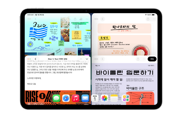 왼쪽이나 오른쪽으로 윈도우를 휙 보내 정렬할 수 있습니다. 이제 iPad 화면을 3분할 또는 4분할로 나눌 수도 있죠.