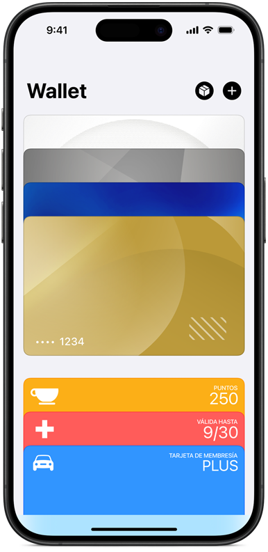 Agregar una tarjeta de crédito o débito es tan fácil como abrir la app Wallet, dar al símbolo más y tocar la parte posterior de tu iPhone con una tarjeta elegible.1 También puedes agregar una tarjeta de forma manual: abre la app Wallet, toca el símbolo más y sigue las instrucciones que aparecen en la pantalla. Tendrás que verificar tu información con el banco o el emisor de la tarjeta. Incluso puedes agregar la tarjeta a tu Apple Watch si lo tienes enlazado. Y cuando cambies de iPhone, puedes transferir tus tarjetas al nuevo dispositivo en un solo paso.