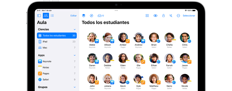 Nuestro compromiso con la familia no termina en la puerta de tu casa. Los dispositivos Apple amplían las posibilidades de los estudiantes en el salón de clases, y apps como Aula ayudan a los maestros a mantener la atención de los alumnos a lo largo de la clase. Los educadores tienen acceso a muchos de los controles que tú tienes. Y Apple no usa la información de tus hijos con fines comerciales ni para crear un perfil personal.