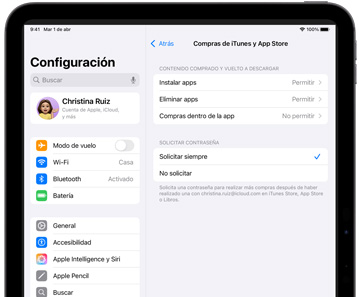Si quieres, puedes impedir que tus hijos instalen nuevas apps; por ejemplo, apps de redes sociales o apps para compartir fotos. También puedes desactivar el navegador web Safari. Y si activas Solicitar la Compra, podrás aprobar o rechazar, desde tu propio dispositivo, las compras y descargas de apps que tus hijos quieran hacer.