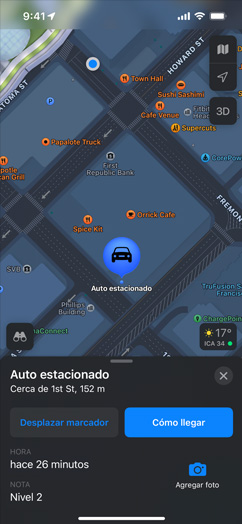 Mapas no asocia tus datos a tu Cuenta de Apple, y Apple tampoco mantiene un historial de los lugares donde estuviste. Las funcionalidades personalizadas, como buscar el lugar donde estacionaste el auto, se inician directamente en tu dispositivo. Y los datos que se usan para mejorar la navegación, como las rutas y los términos de búsqueda, no están asociados a tu identidad, sino que se basan en identificadores aleatorios que cambian constantemente.