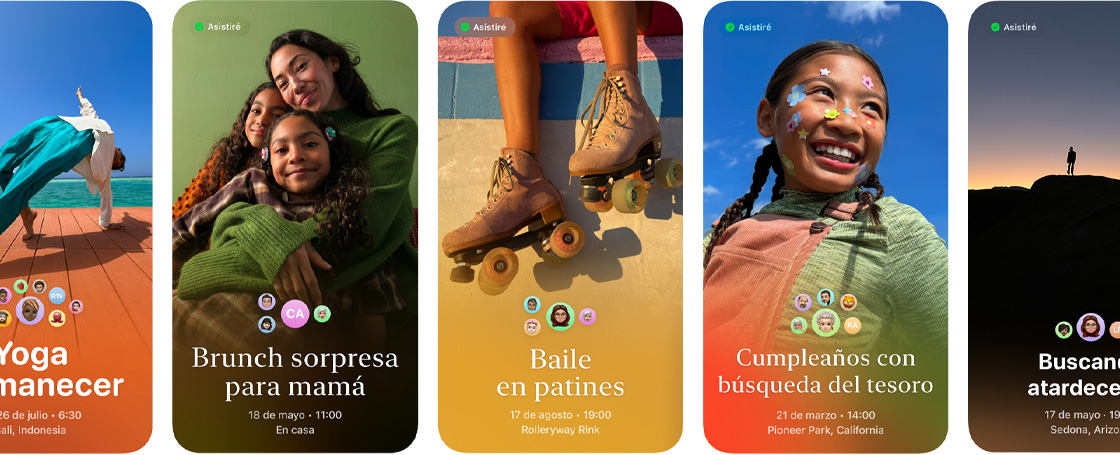 Invitaciones Apple es una nueva forma de crear invitaciones únicas para todo tipo de momentos. Elige un fondo o usa Apple Intelligence para generar una imagen y diseñar tu invitación. Puedes usar Apple Music, Fotos, Mapas y más para hacer más atractivo tu evento. Luego envíasela a tus invitados y mira quiénes van confirmando su asistencia. Es todo lo que necesitas para empezar a celebrar, y está incluido en tu suscripción a iCloud+.