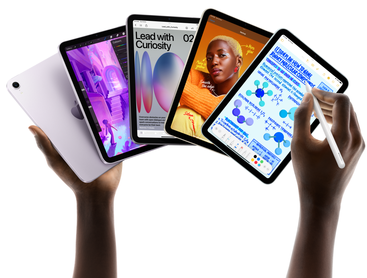 iPad mini has everything there is to love about iPad in a delightfully light, compact design. It features a 100 per cent recycled aluminium enclosure and stunning all‑screen design, and it goes anywhere you go — fitting perfectly into a backpack or purse.