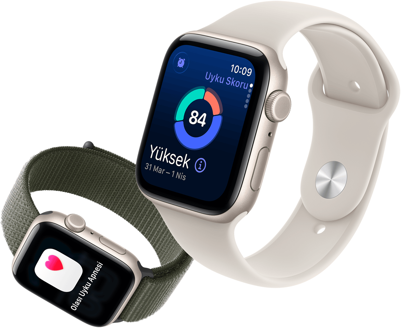 Sağlığınız hakkında önemli bilgiler edinmek için Apple Watch SE 3’ünüzün kolunuzda olması yeterli. İnovatif bilekten sıcaklık sensörü sayesinde Yaşam Bulguları uygulamasında daha detaylı bilgiler edinebiliyor ve Döngü İzleme uygulamasında geriye dönük yumurtlama zamanı tahminlerine erişebiliyorsunuz. Ayrıca günlük uyku skorunuzu öğrenebiliyor ve olası uyku apnesi bildirimleri alabiliyorsunuz. Bilgiye sahip olmak hiç bu kadar kolay olmamıştı.