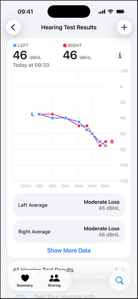 Private, secure and easy to manage. All your Hearing Test data is privately and securely stored in the Health app on your device. You can retake the test whenever you want, monitor your hearing over time, download your test results and read helpful articles about hearing health.