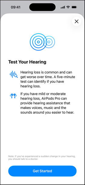 Access a Hearing Test,1 a Hearing Aid feature1 and active Hearing Protection2 using just AirPods Pro 3 or AirPods Pro 2 and an iPhone or iPad. It’s the world’s first end‑to‑end hearing health experience.